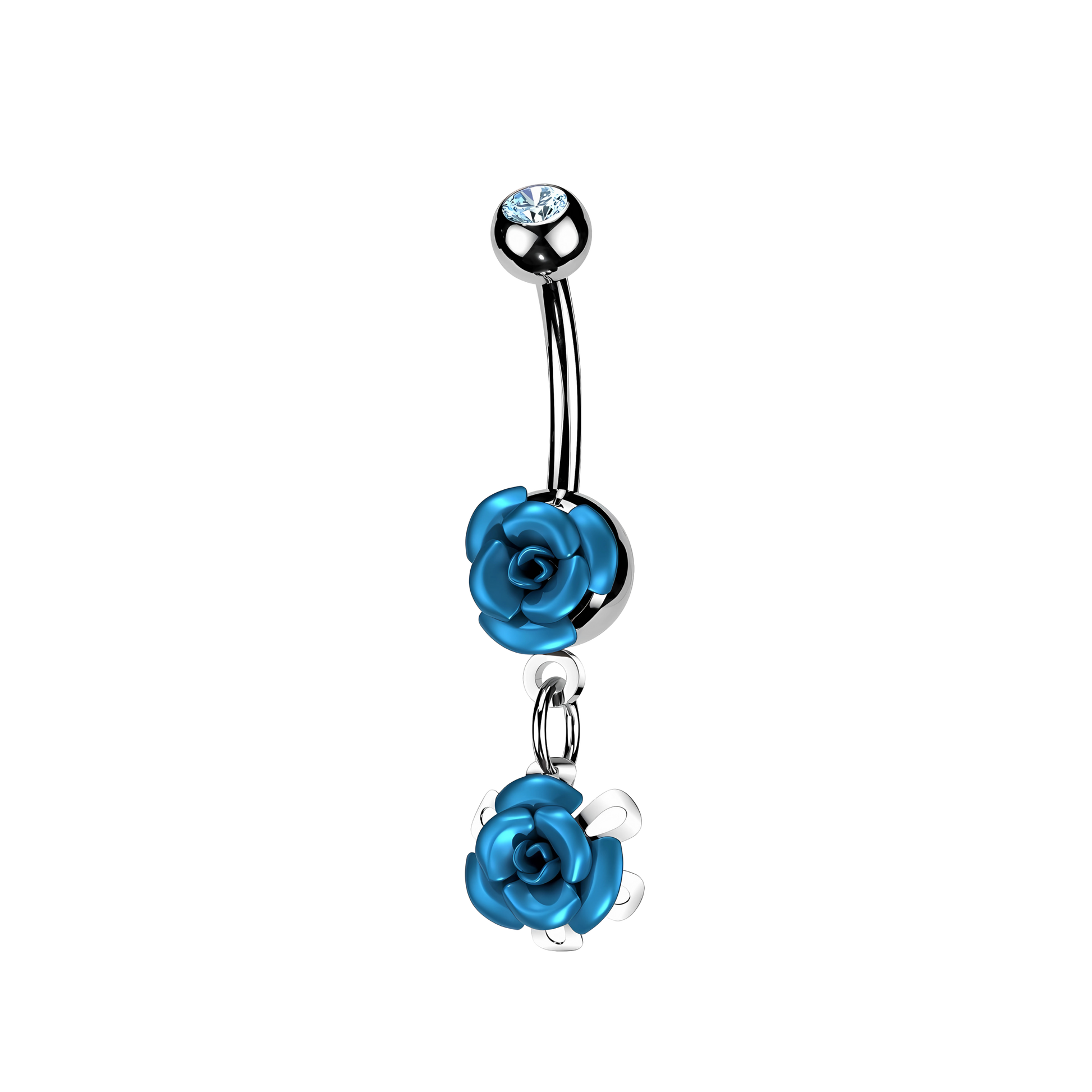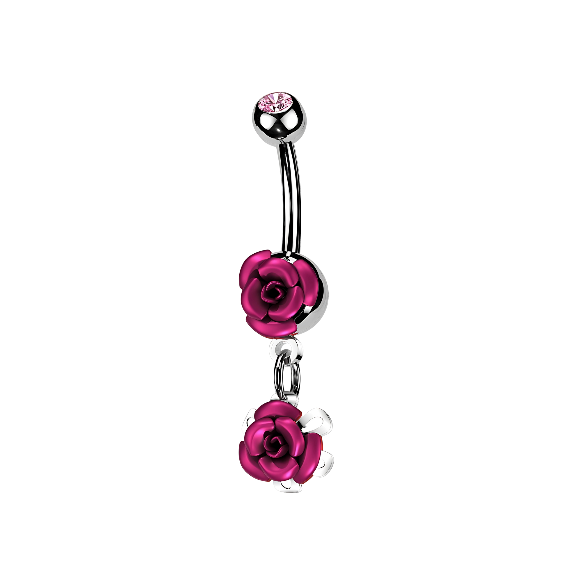 Piercing tipo navel con rosca externa, un diseño original en forma de rosa. Disponible en varios colores.