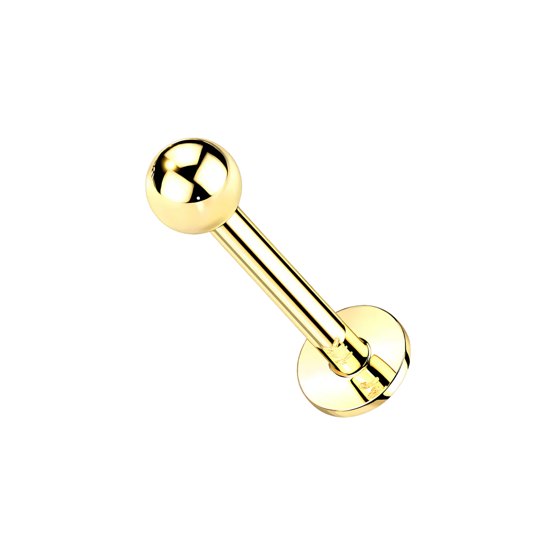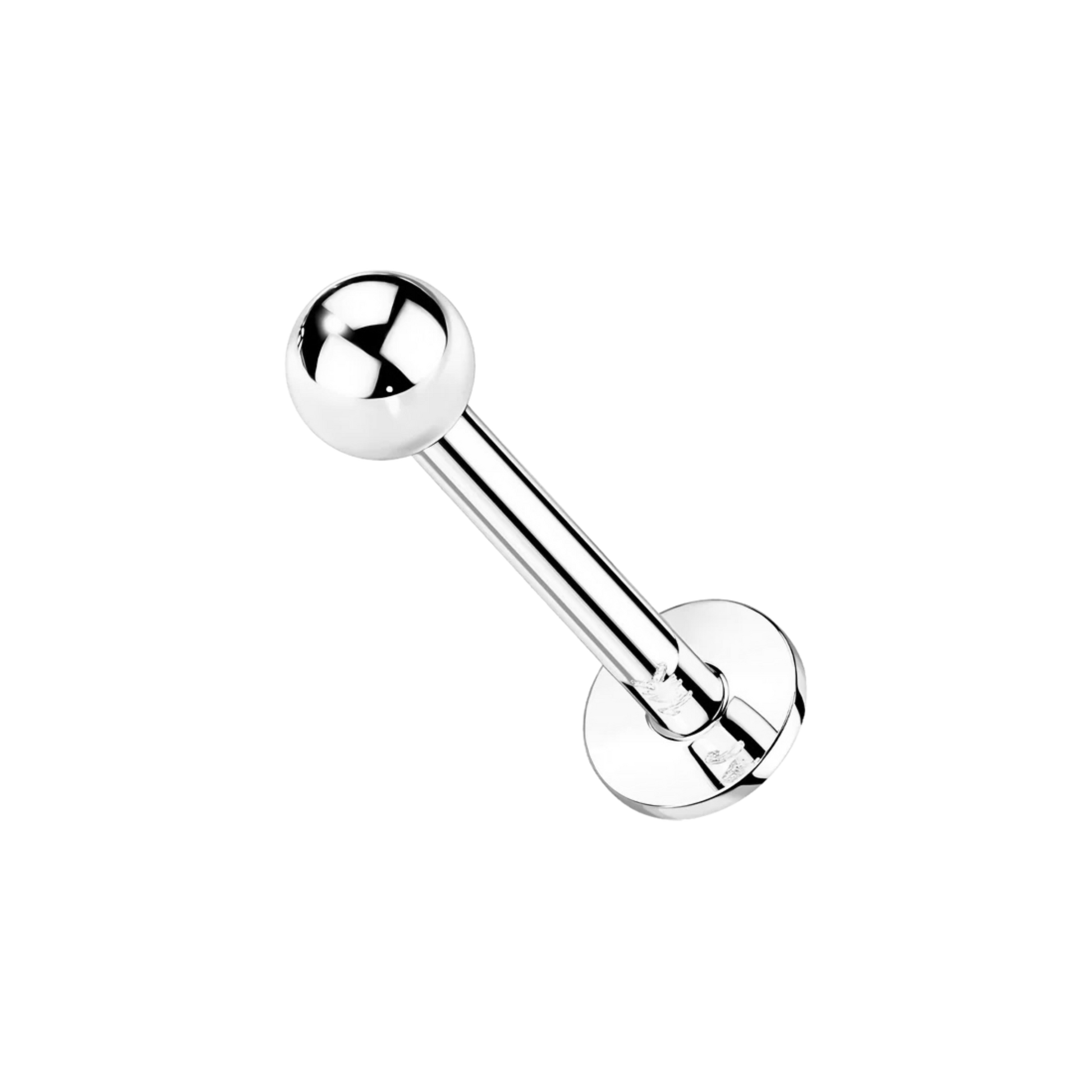 Piercing tipo labret con rosca externa, un diseño clásico. Disponible en varios colores y materiales.