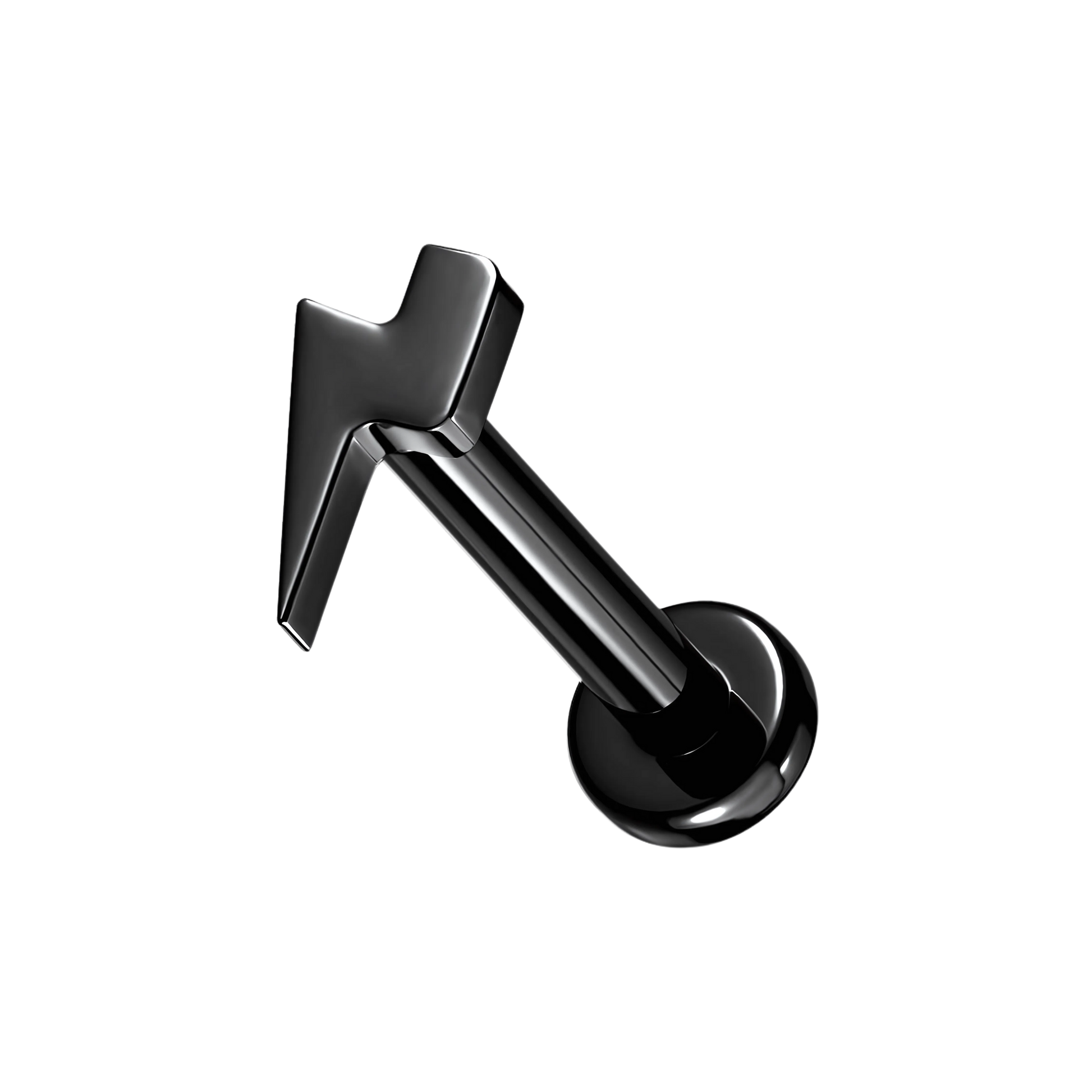 Piercing tipo labret con rosca interna, un diseño simple en forma de rayo. Disponible en varios colores.