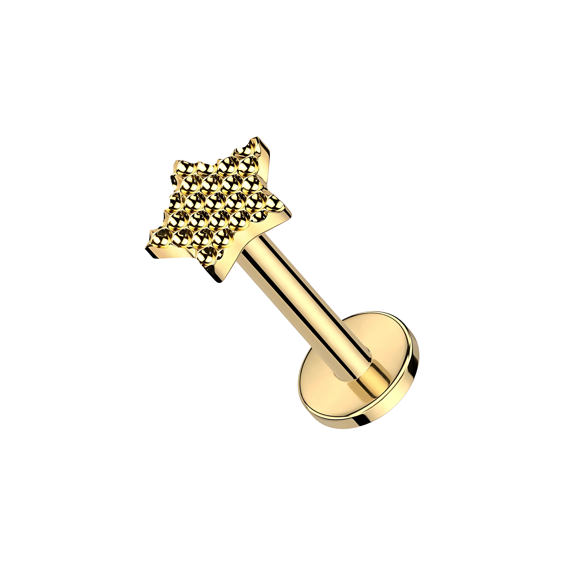 Piercing tipo labret con rosca externa, un diseño en forma de estrella