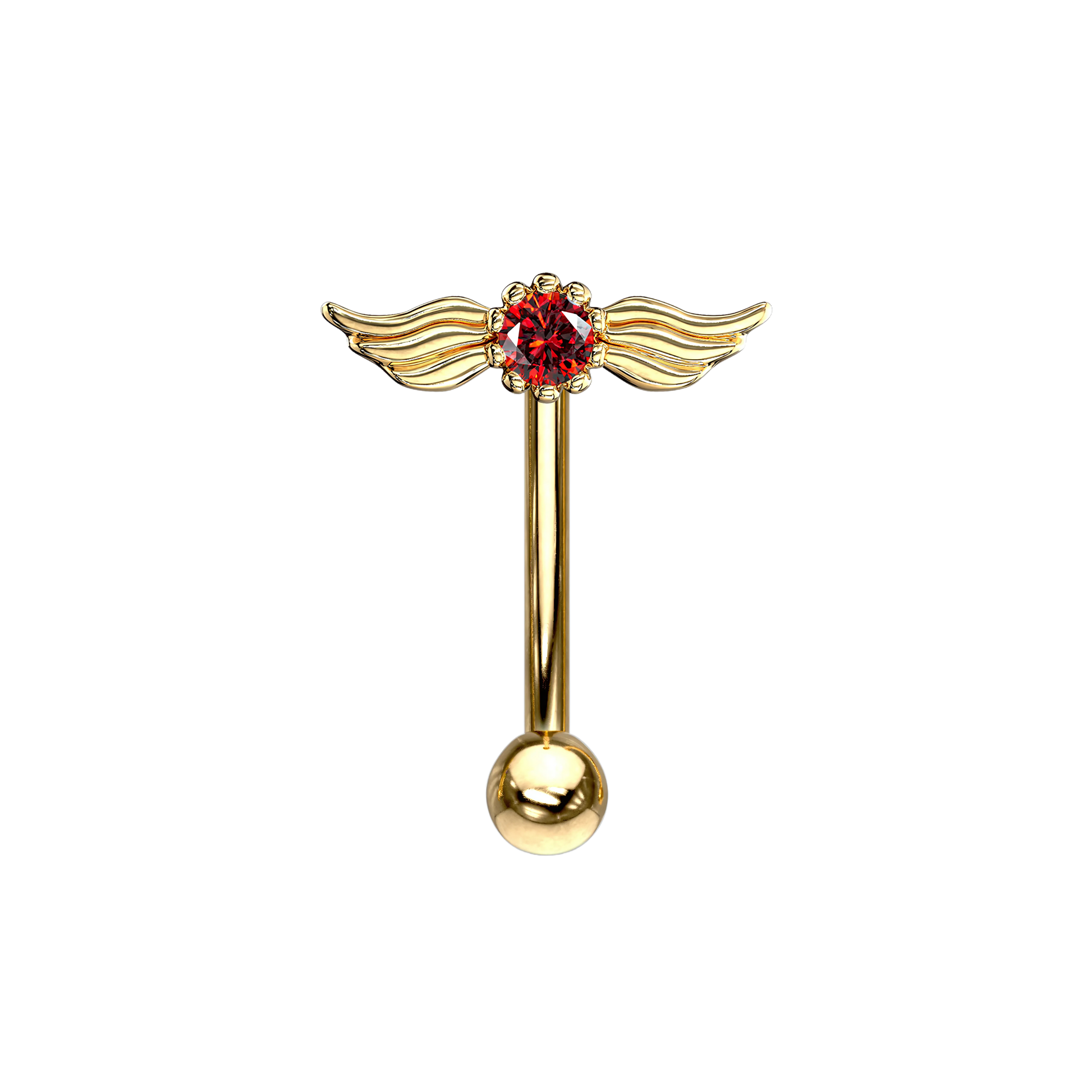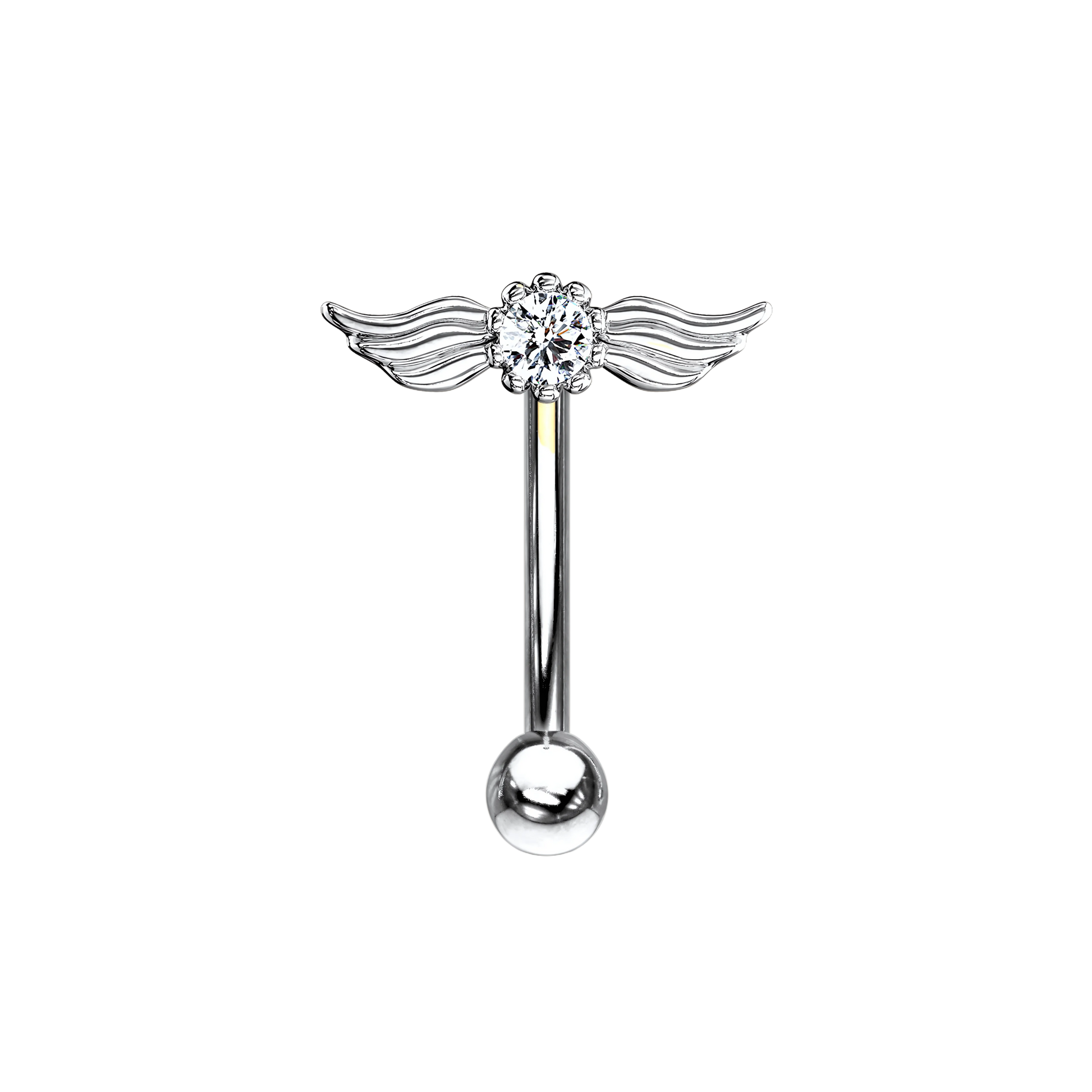 Piercing tipo banana con rosca externa, un diseño en forma de alas brillante. Disponible en varios colores.