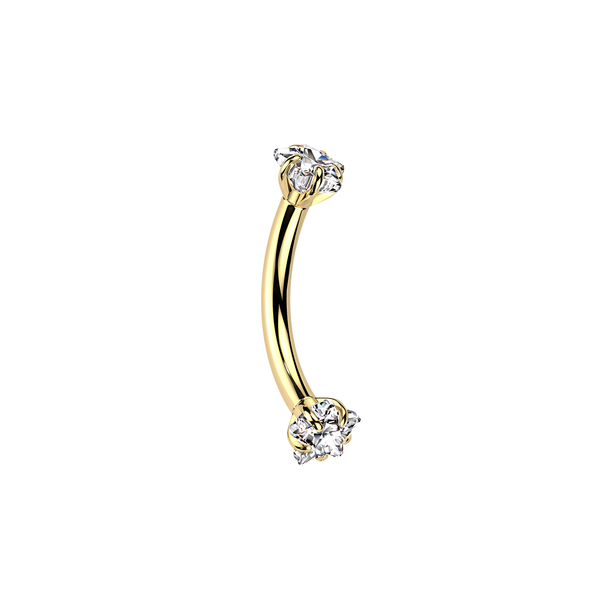 Piercing tipo banana con rosca interna, un diseño brillante en forma de estrella. Disponible en varios colores y materiales.
