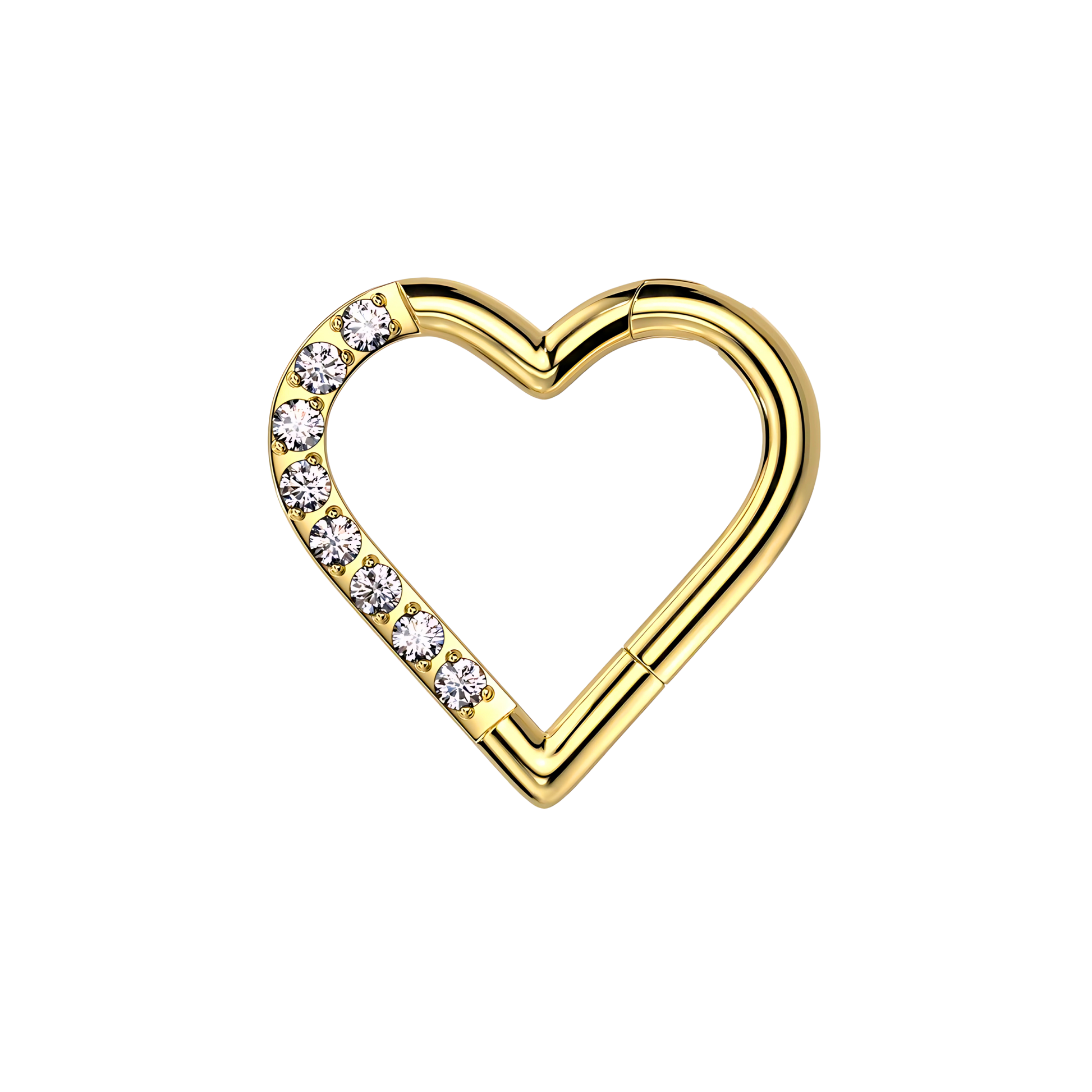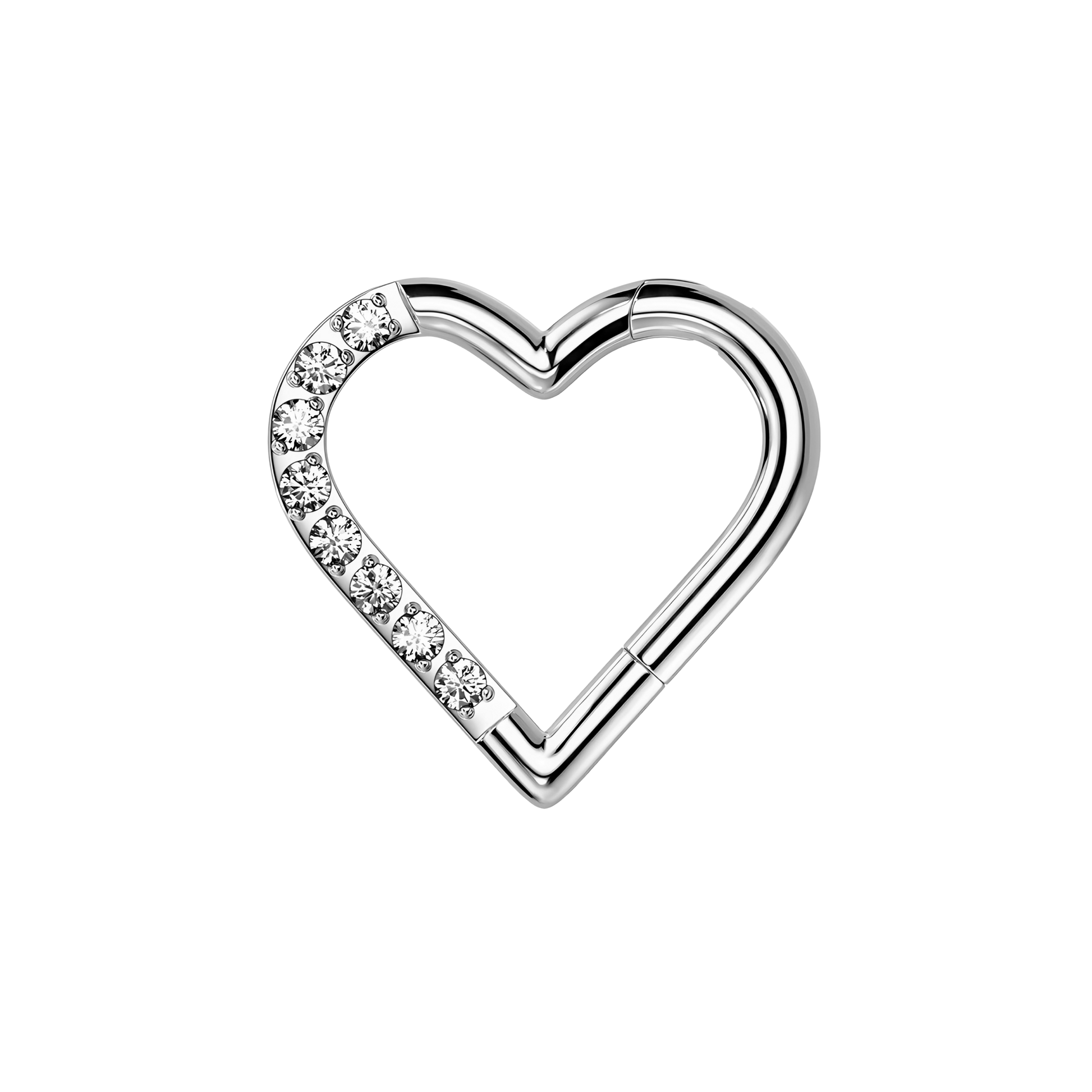 Piercing tipo aro con cierre clicker, un diseño original en forma de corazón y brillos. Disponible en varios colores.
