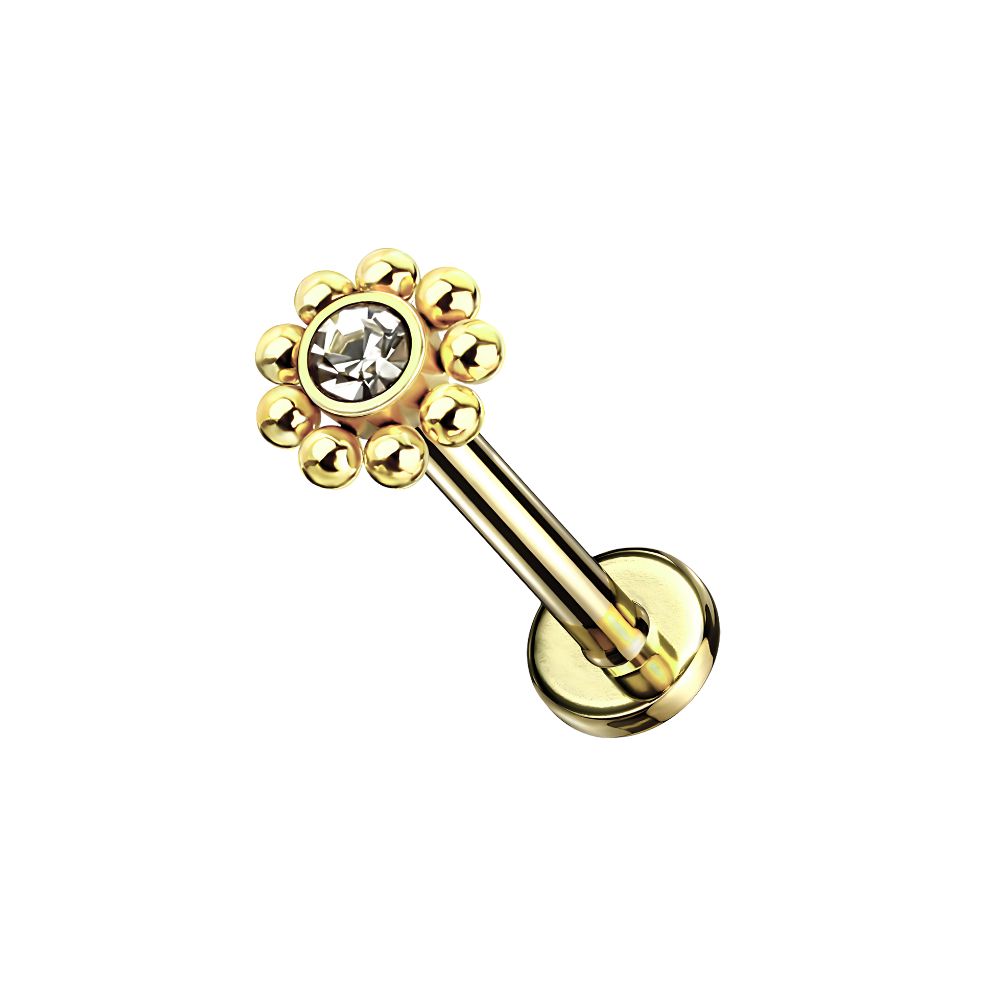 Piercing tipo labret con rosca interna, un diseño original y brillante.