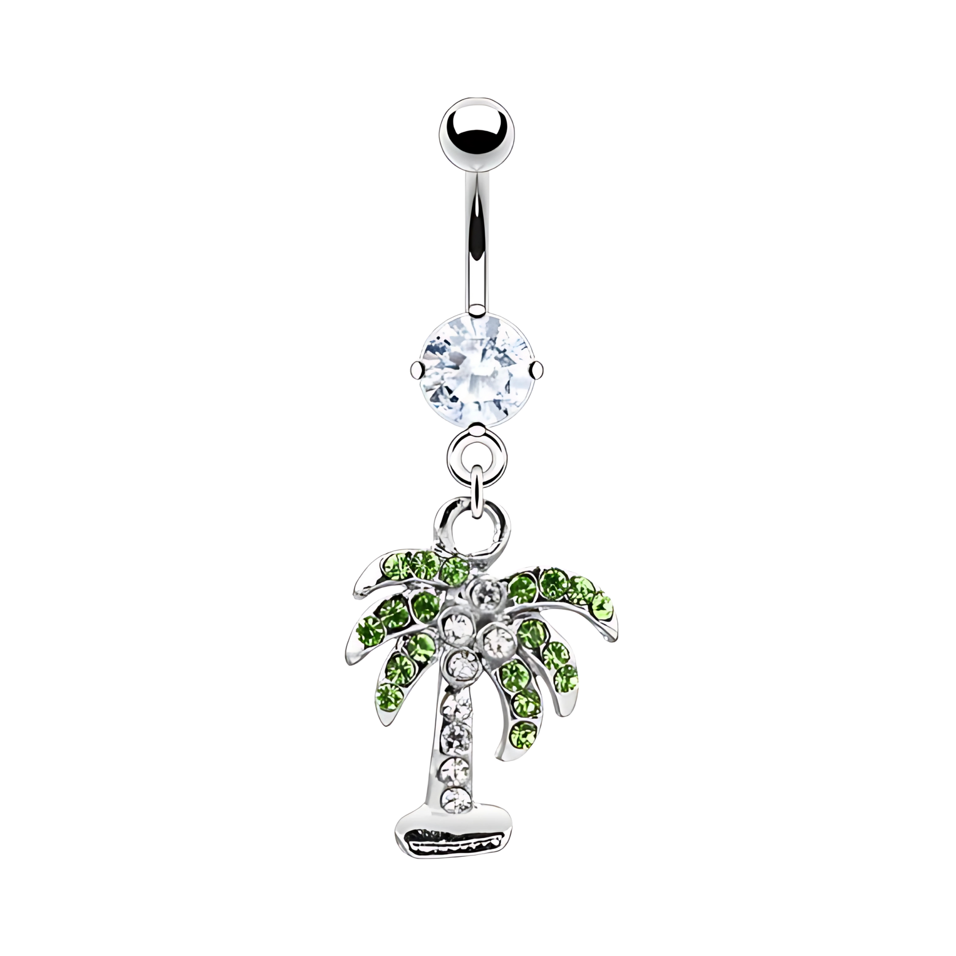 Piercing tipo navel con rosca externa, un diseño original en forma de palmera.