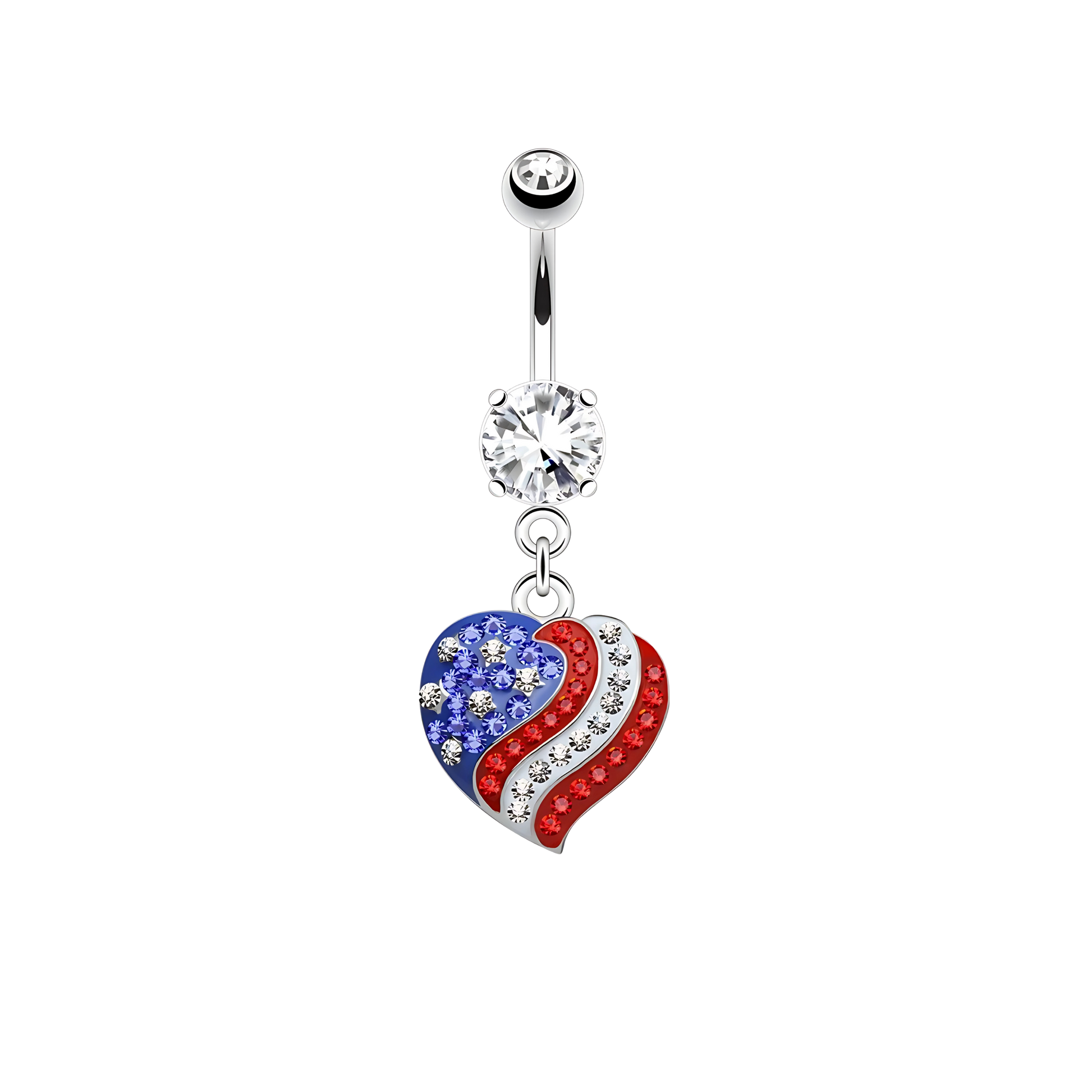 Piercing tipo navel con rosca externa, un diseño en forma de bandera.