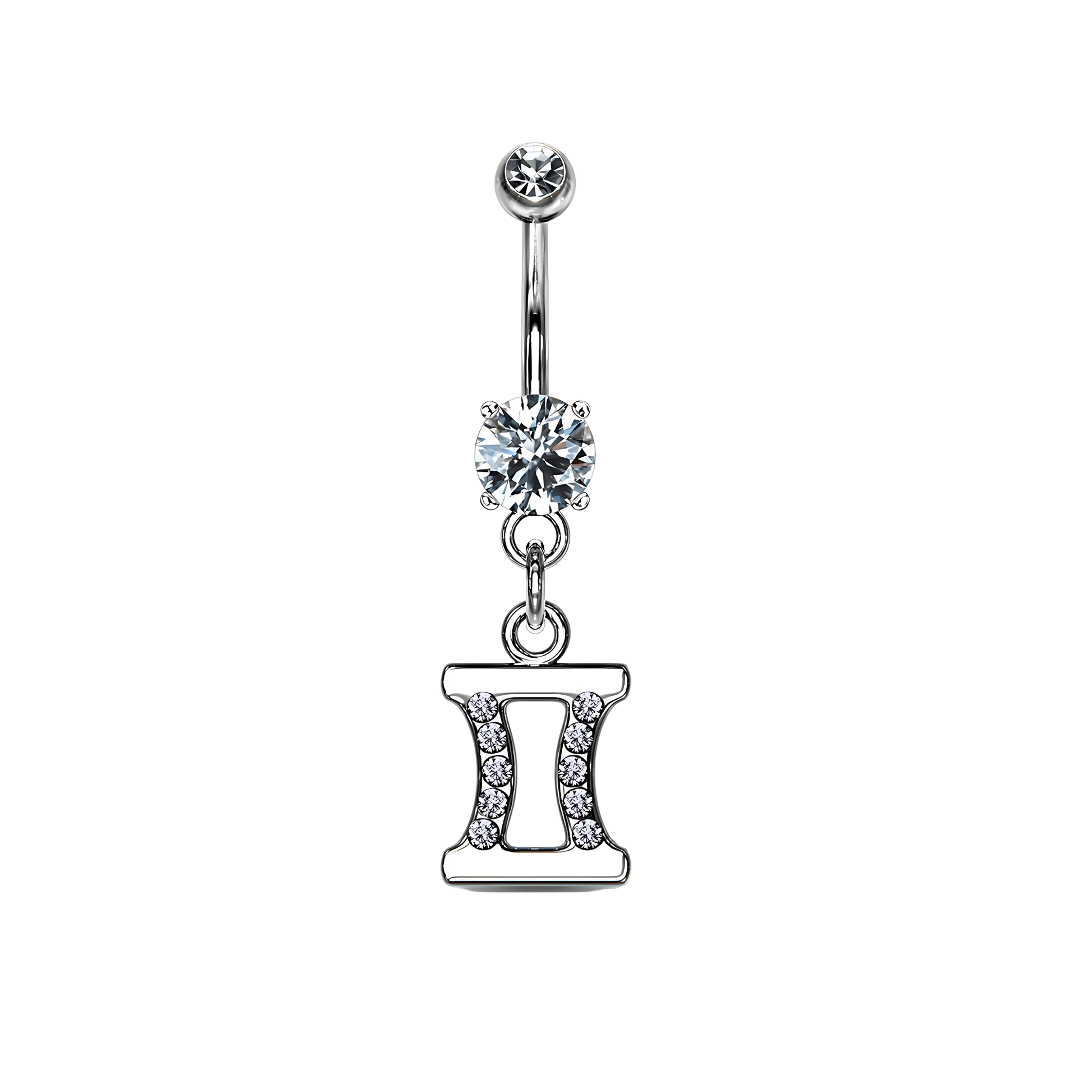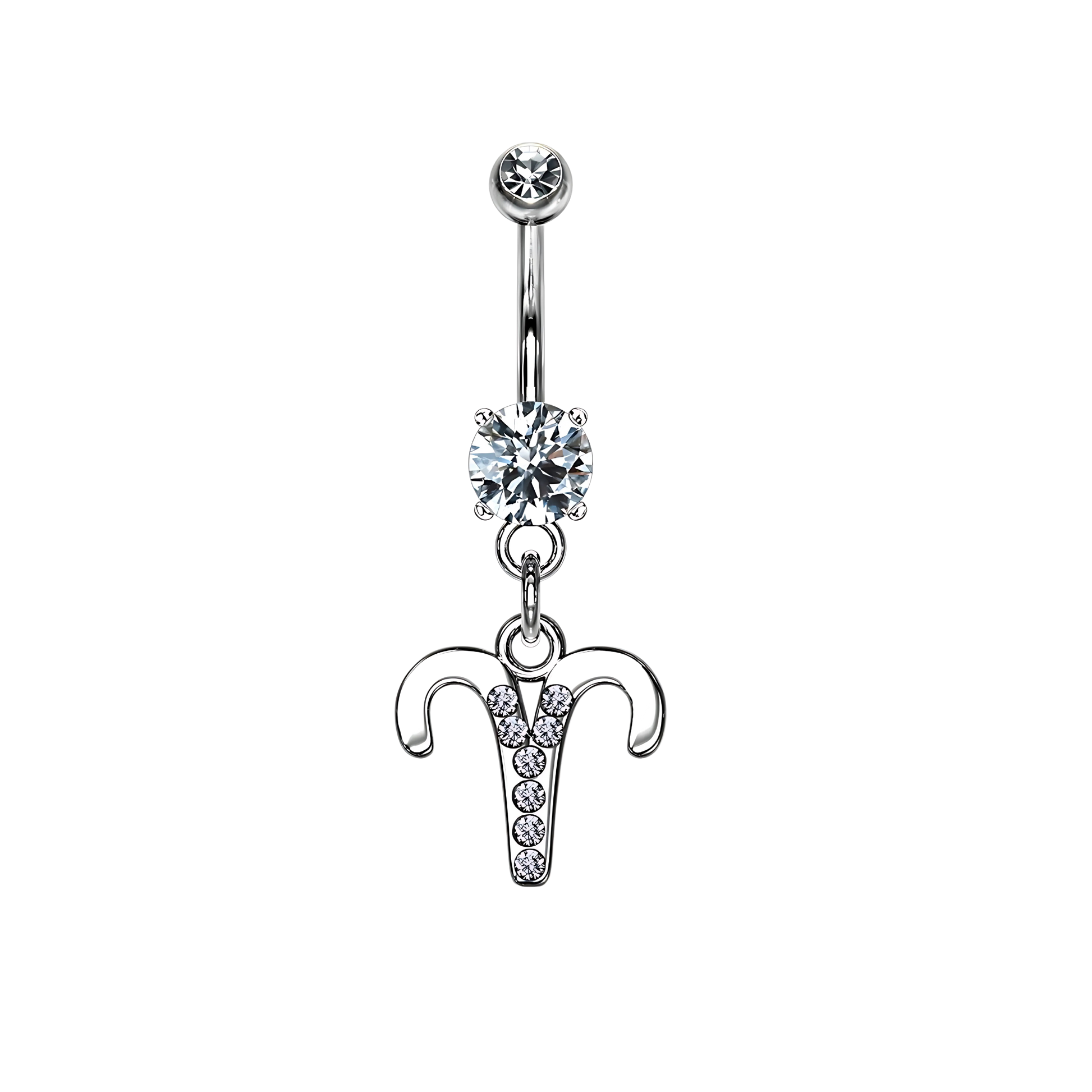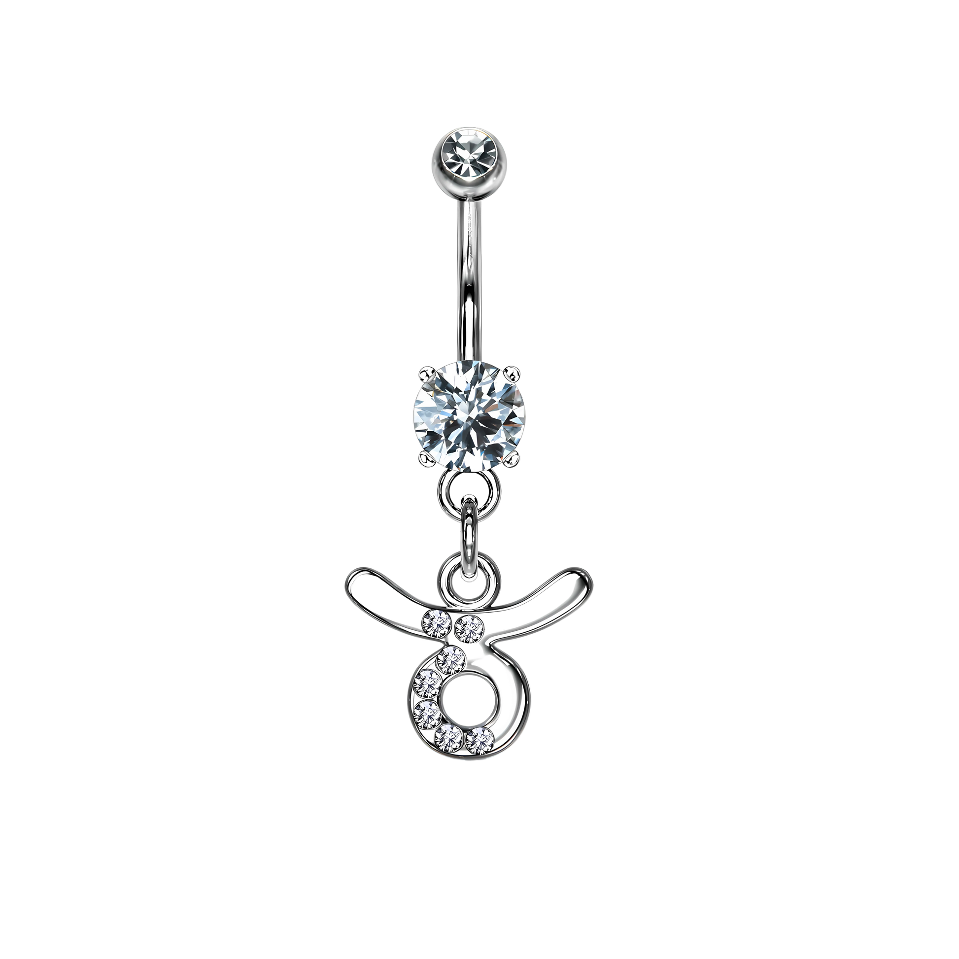 Piercing tipo navel con rosca externa, un diseño inspirado en los signos del horóscopo.